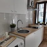 В цьому помешканні передбачена повністю обладнана кухня з мікрохвильовою піччю, холодильником і кухонним приладдям, а також кавоваркою.